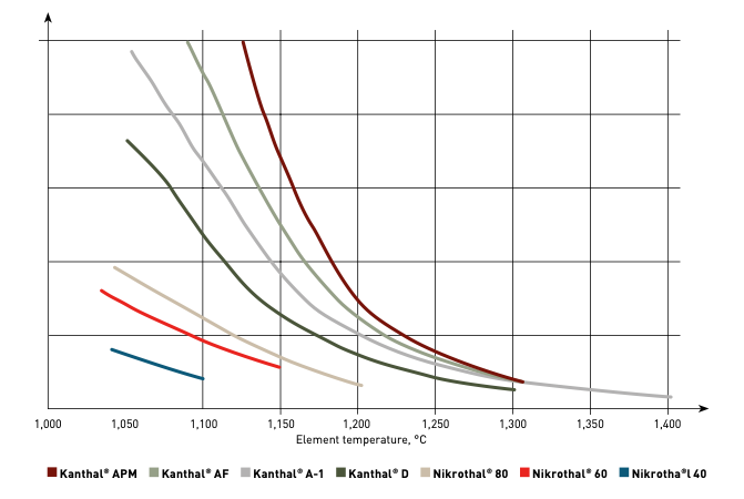 Numerous practical applications also show a much longer life of Kanthal® elements.