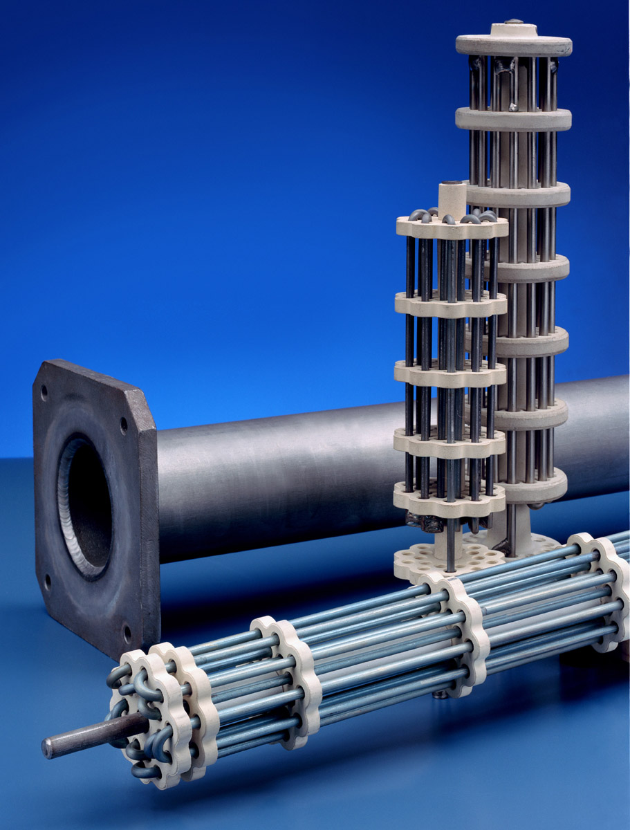 Bayonet heating element uses range from heat treat furnaces and die casting machines to molten salt baths and incinerators. They are also useful in converting gas-fired furnaces to electric heating.